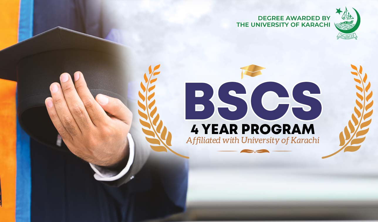 The Bachelors of Studies in Computer Science is a Four-Year degree program in affiliation with the University of Karachi consisting of 8 semesters of 6 months duration, 2 semesters in a year. It requires completion of 48 courses as prescribed by the University of Karachi.